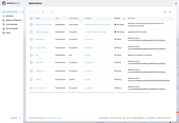 In addition to the UI Weave GitOps provides a frictionless way to get up to speed with your GitOps experience: GitOps Run. All you need to get started is a cluster and the Weave GitOps CLI. Everything else, including Flux and the Weave GitOps Dashboard will be set up automatically for you.